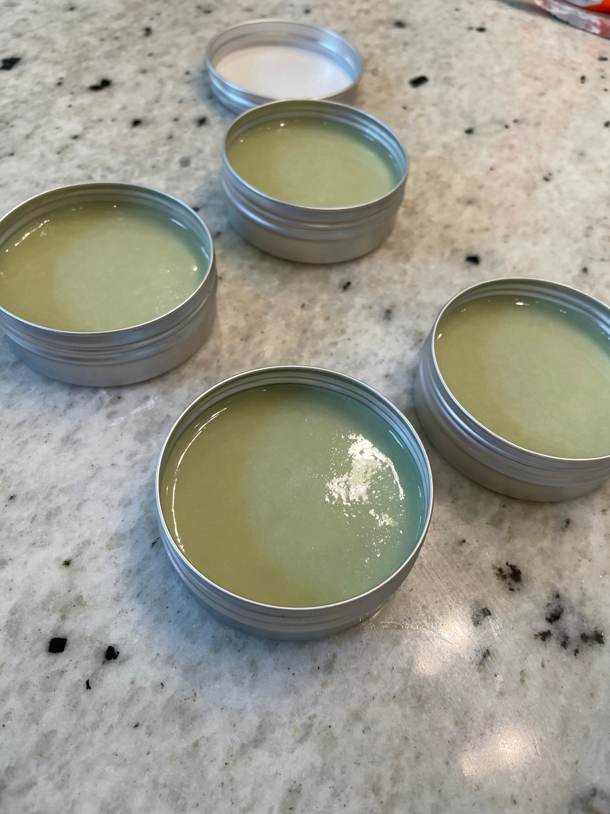 Natural handmade deodorant balm. Ingredients: shea butter, coconut oil, arrowroot powder, magnesium hydroxide, essential oils.