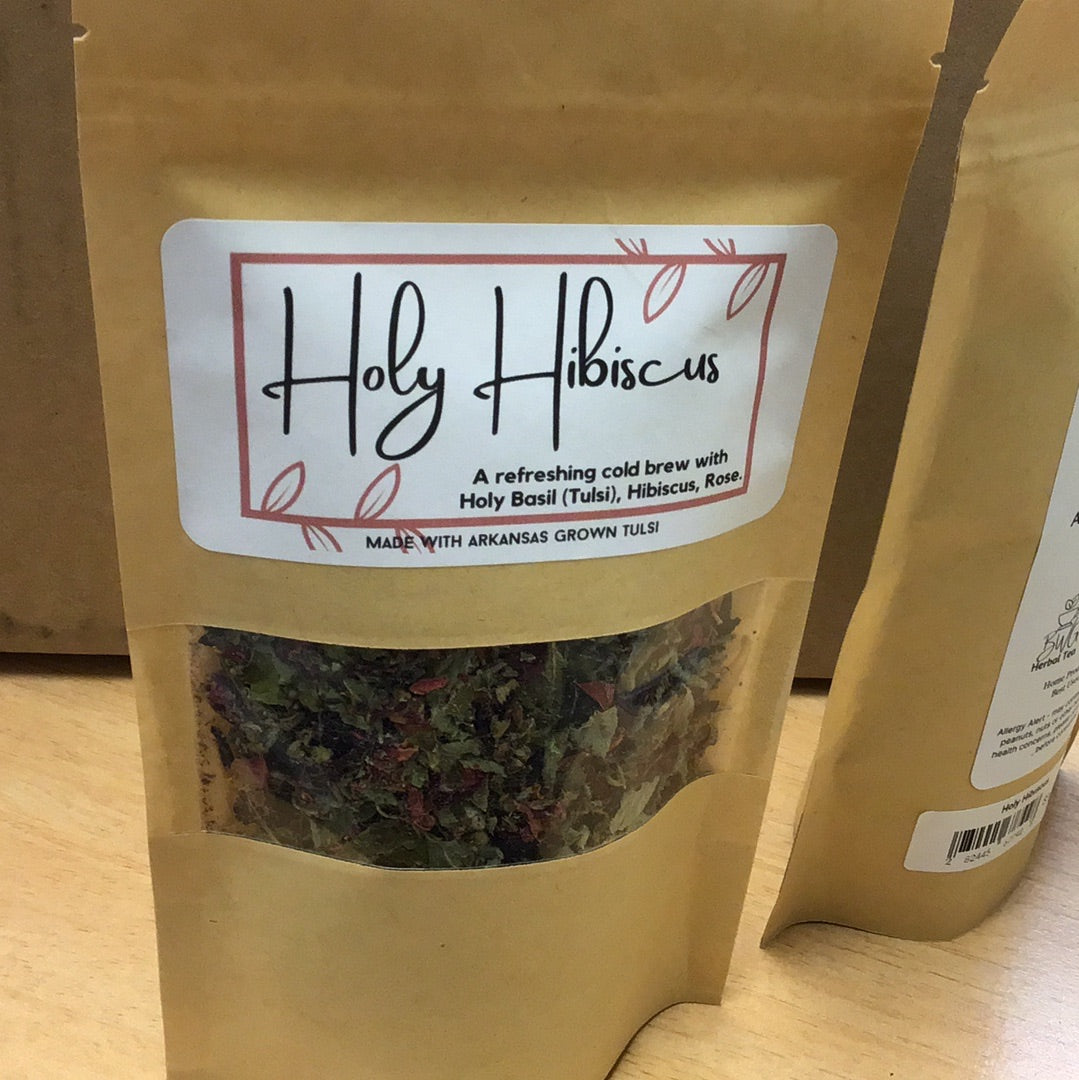 Holy Hibiscus - the name says it all. This is a beautiful blend of homegrown Tulsi (also known as Holy Basil), Hibiscus and Rose. The result is a delicious tea that is sure to be your new favorite!