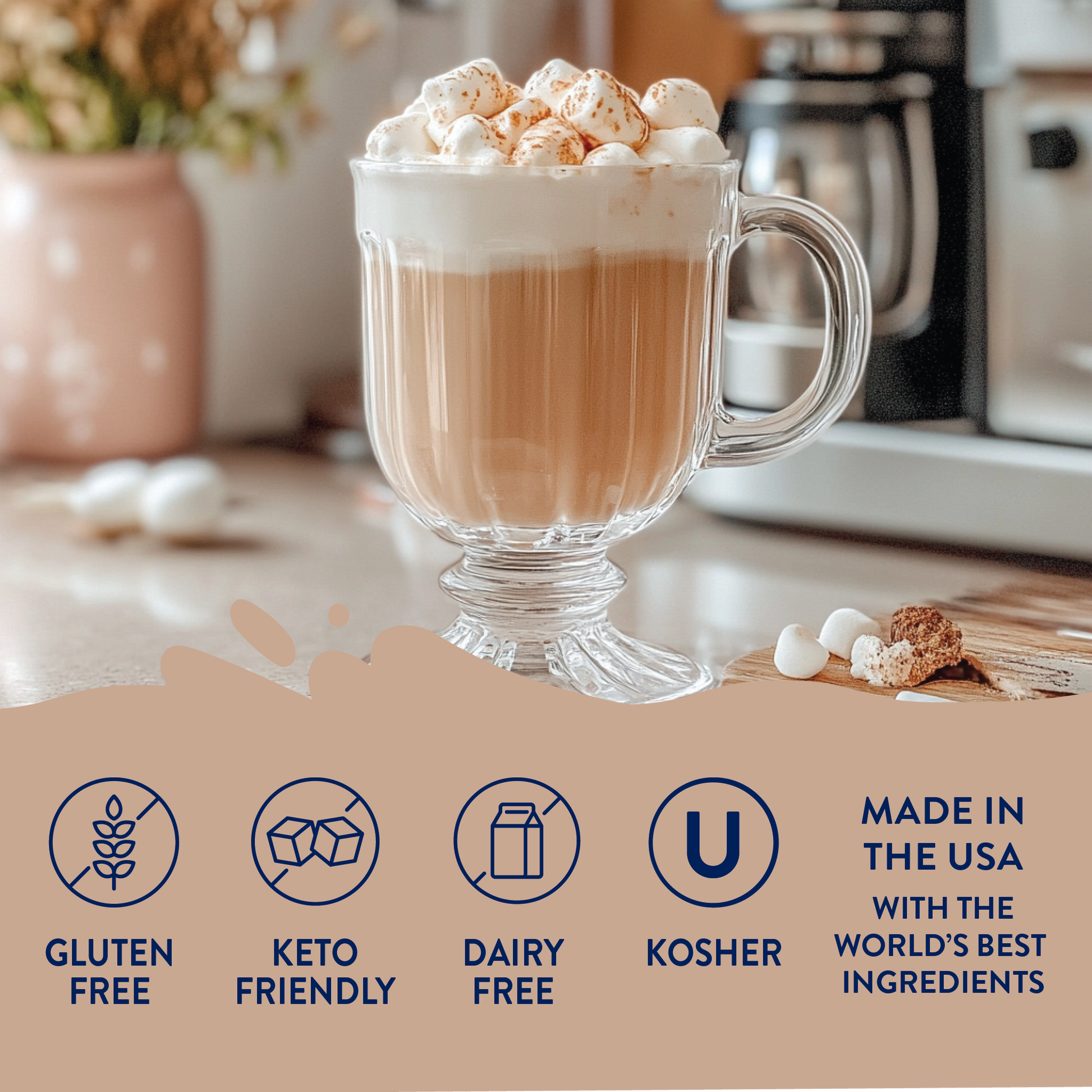 Indulge in the nostalgic charm of toasted marshmallows without the guilt. This delectable syrup adds a sweet, smoky twist to your favorite beverages and desserts. Experience the warmth and joy of a campfire treat, anytime, anywhere.