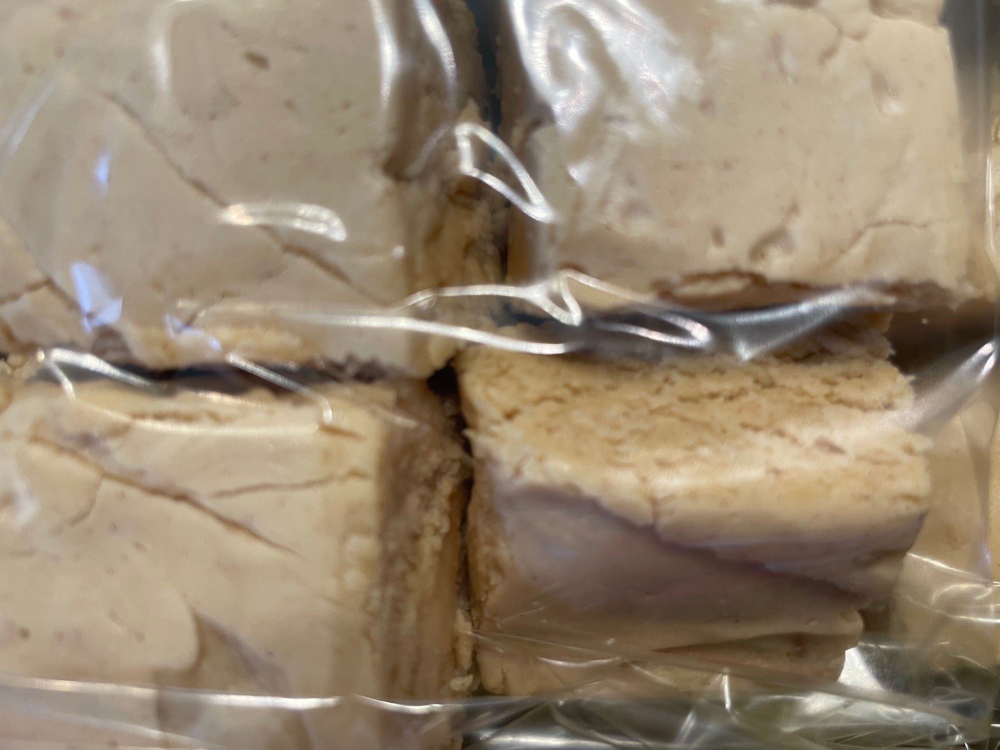 Half pound peanut butter fudge made to order. Ingredients: peanut butter, sugar, milk. Contains allergens. This product was produced in a private residence that is exempt from state licensing and inspection. This product may contain allergens. made to order with porch pickup or shipping